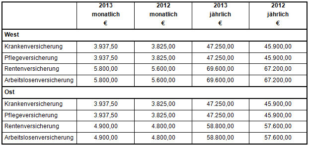 Neue Beitragsbemessungsgrenzen ab 1. Januar 2013
